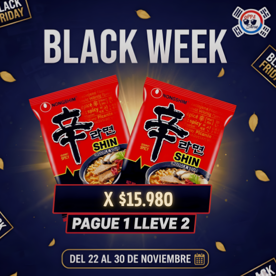 Ramen Tradicional Coreano (Shin Ramyun), elaborado con carne de vacuno, salsa Shoyu, setas shitake, jengibre, puerro, zanahoria, y pimienta.