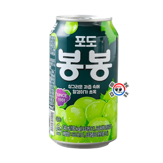 Descubre una de las bebidas más icónicas de Corea del Sur 🇰🇷. Bong Bong Uva de Haitai es un delicioso jugo de uva que incluye trozos reales de fruta, creando una experiencia única en cada sorbo.