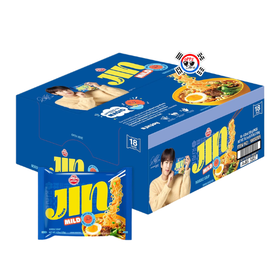 Ottogi Jin Ramen Mild Bowl 110gr es un ramen instantáneo muy popular en Corea y el mundo. Sus fideos presentan una textura masticable, con un sabor suave. El caldo tiene un profundo y delicioso sabor a res que se complementa perfectamente con el sabor de los fideos. Además contiene trozos de vegetales: cebolla verde, hongo shiitake y zanahoria, los cuales agregan una textura especial a la sopa. Tiene un ligero toque picante que alegrará tu paladar.