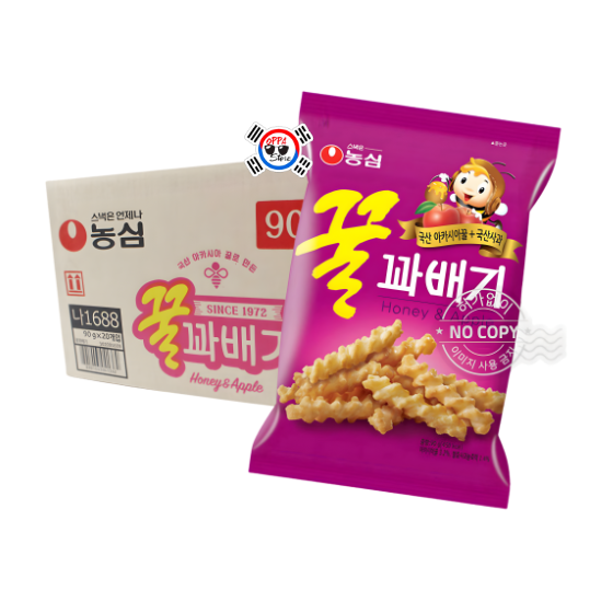 ¡Un clásico coreano deliciosamente dulce y crujiente! El Nongshim Honey & Apple Twist Snack (꿀꽈배기) está hecho con masa de trigo trenzada, frita hasta dorarse a la perfección y cubierta con un dulce glaseado de miel y manzana. Este irresistible snack ofrece la combinación perfecta de textura crujiente y un sutil dulzor afrutado.