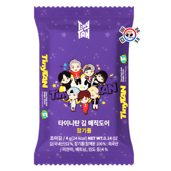 Disfruta el equilibrio perfecto entre lo crujiente, saludable y delicioso con este snack coreano de Tiny Tan, inspirado en BTS 💜. Elaborado con algas de alta calidad y un toque de sésamo tostado, ofrece un sabor ligeramente salado con un irresistible aroma a nuez.