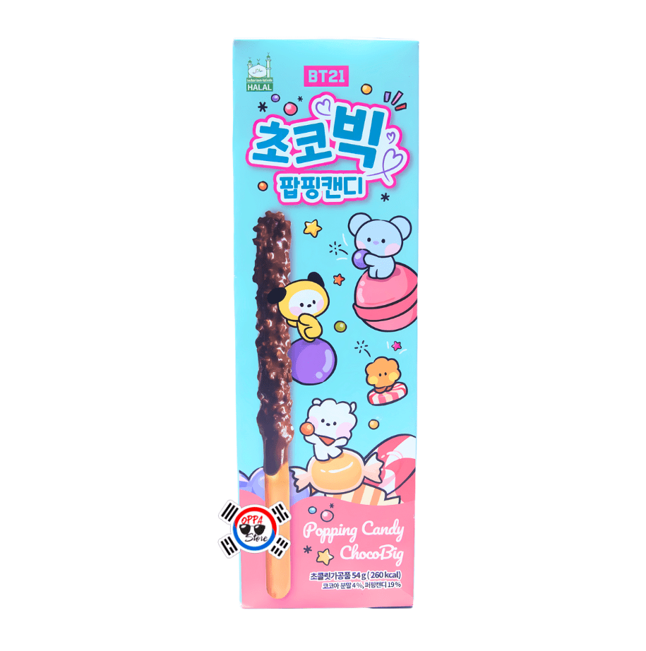Disfruta de estos deliciosos palitos de chocolate inspirados en los personajes más queridos de BT21. Cada empaque presenta diseños coleccionables con KOYA, TATA, COOKY, CHIMMY y más, ideales para fanáticos de K-Pop y amantes de los snacks coreanos.