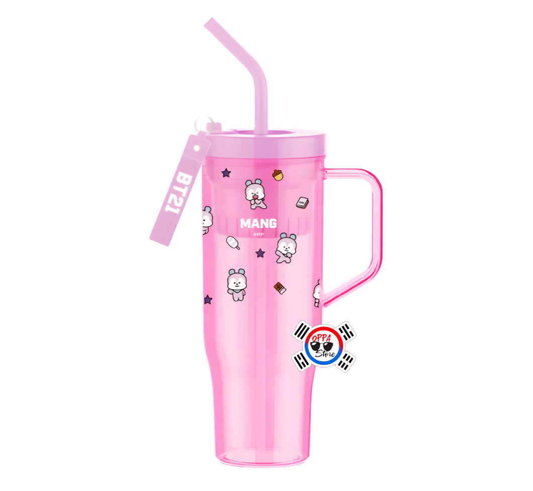 Este increíble termo BT21 de 1250 ml con el adorable personaje Mang es el complemento perfecto para cualquier fan. Su hermoso diseño en color rosa translúcido con estampado de Mang lo convierte en un accesorio práctico y lleno de estilo.